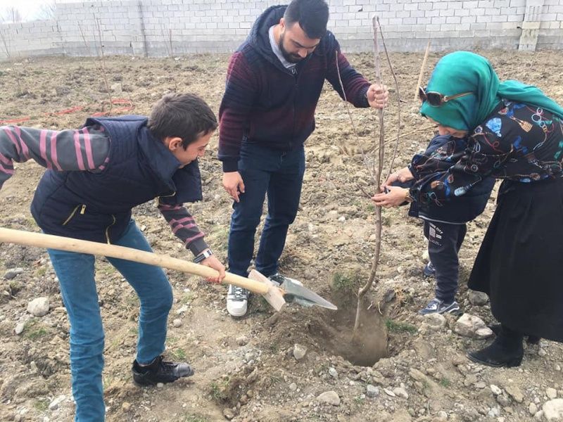 Okulumuz Bahçesinde Elma, Armut, Şeftali, Kayısı, Kiraz, Vişne Erik ağaçlarından toplam 45 adet fidan dikimini öğrencilerimizle gerçekleştirdik.